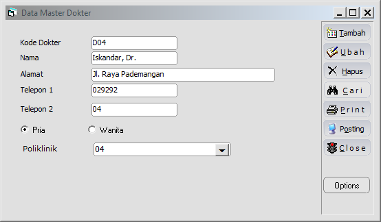 - kemudian pilih poliklinik defaultnya (untuk membuat data pilihan klik options->setting poliklnik)